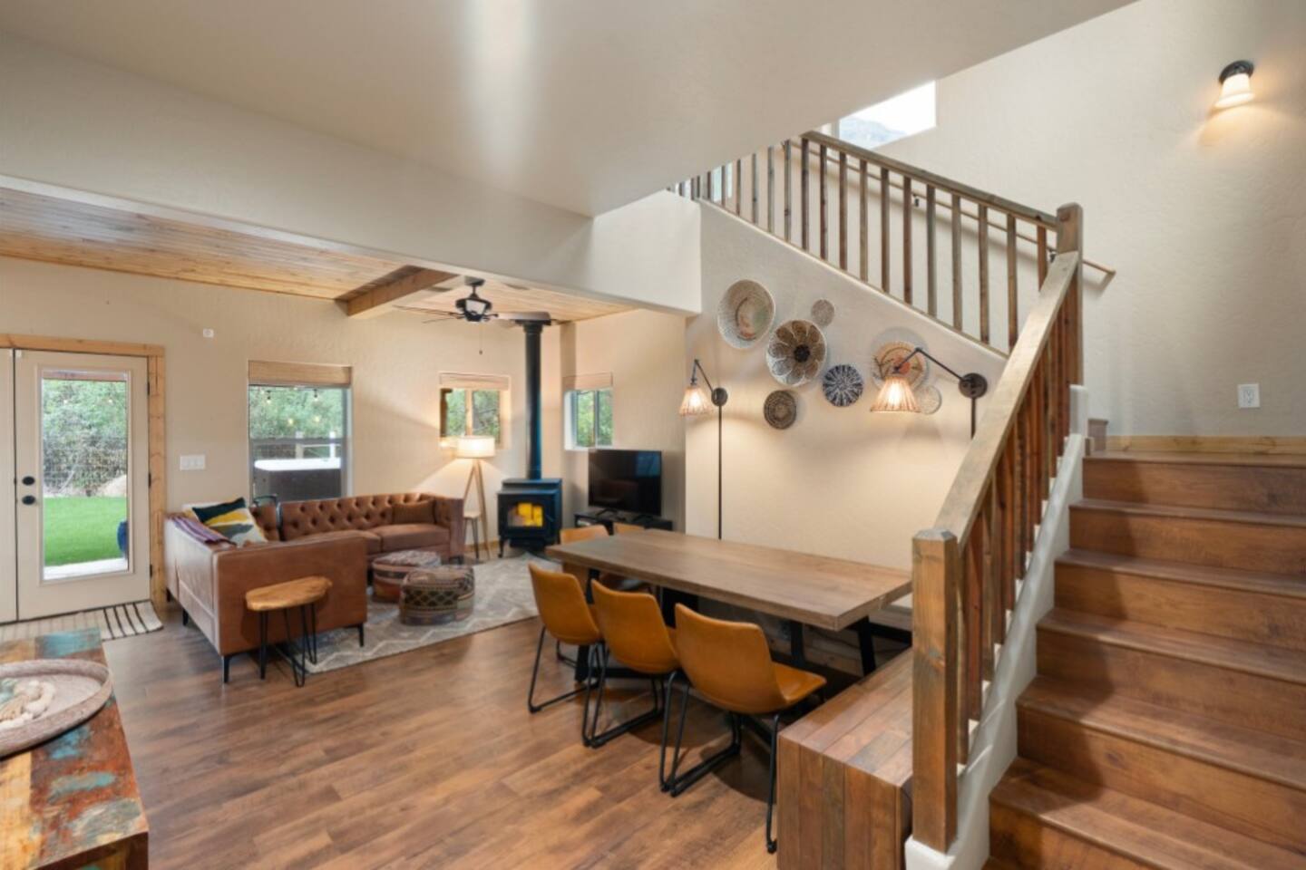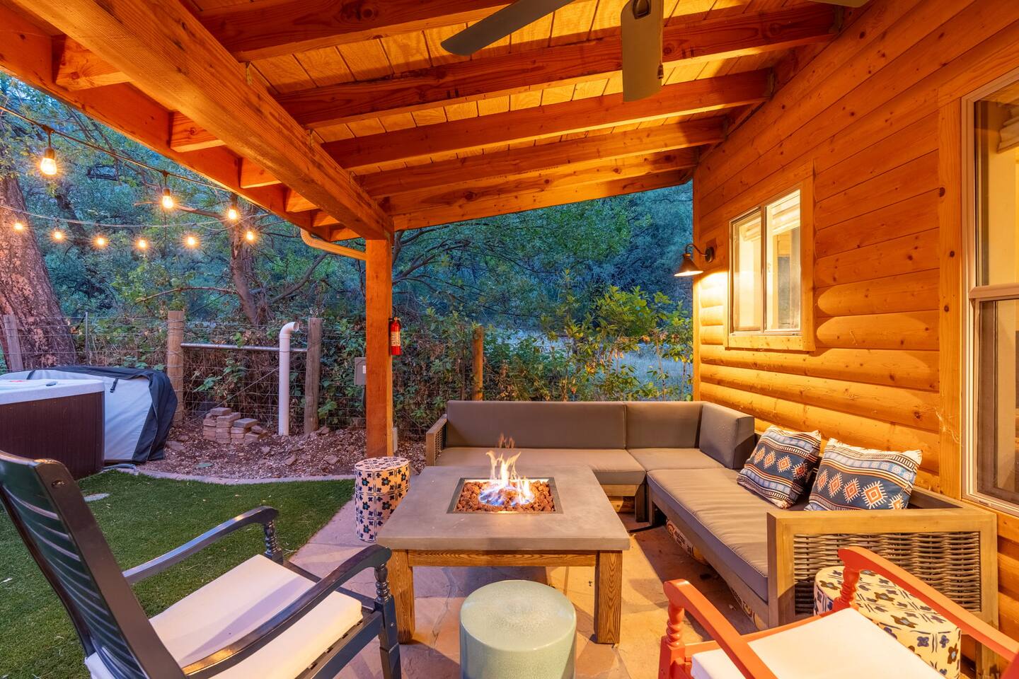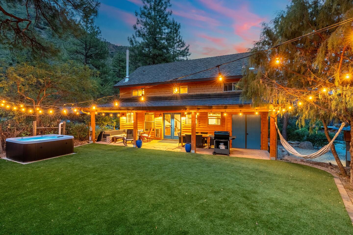 Welcome to Sedona’s Hideaway at Oak Creek Canyon — a private, designer-styled sanctuary for up to 12 guests. Soak in the hot tub under the stars, host movie nights on a 150″ screen, or discover a secret swimming hole known only to locals- and less than a mile from Slide Rock! With luxe boho-mid-century interiors, fire-pit evenings, and canyon trails right outside your door, this retreat blends Sedona’s allure with privacy, comfort, and unforgettable experiences.