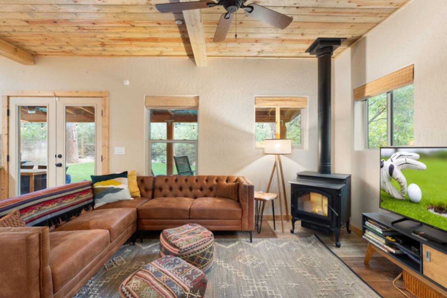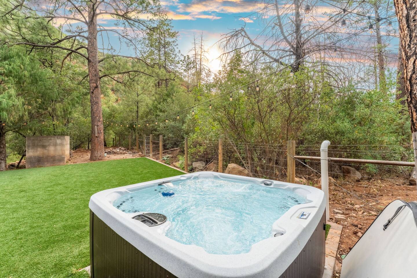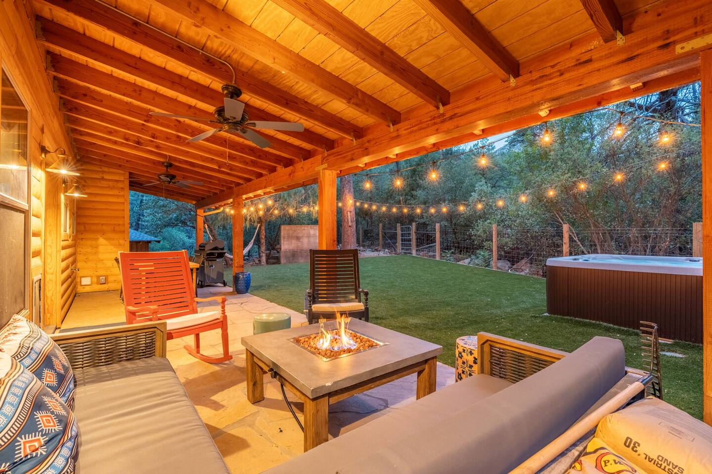 Welcome to Sedona’s Hideaway at Oak Creek Canyon — a private, designer-styled sanctuary for up to 12 guests. Soak in the hot tub under the stars, host movie nights on a 150″ screen, or discover a secret swimming hole known only to locals- and less than a mile from Slide Rock! With luxe boho-mid-century interiors, fire-pit evenings, and canyon trails right outside your door, this retreat blends Sedona’s allure with privacy, comfort, and unforgettable experiences.
