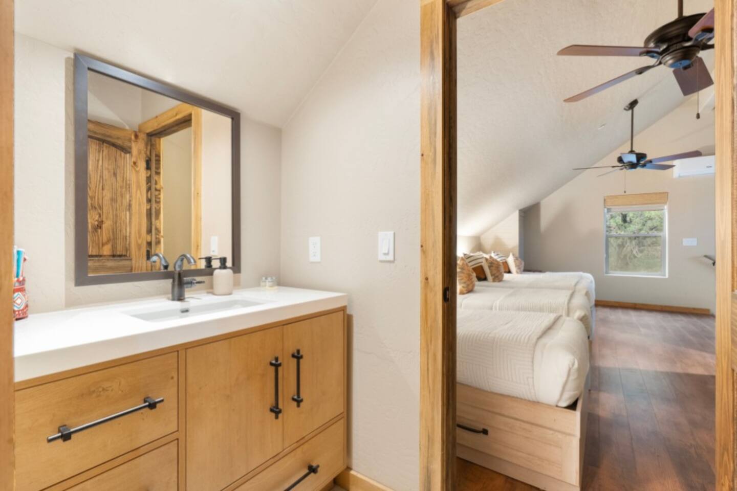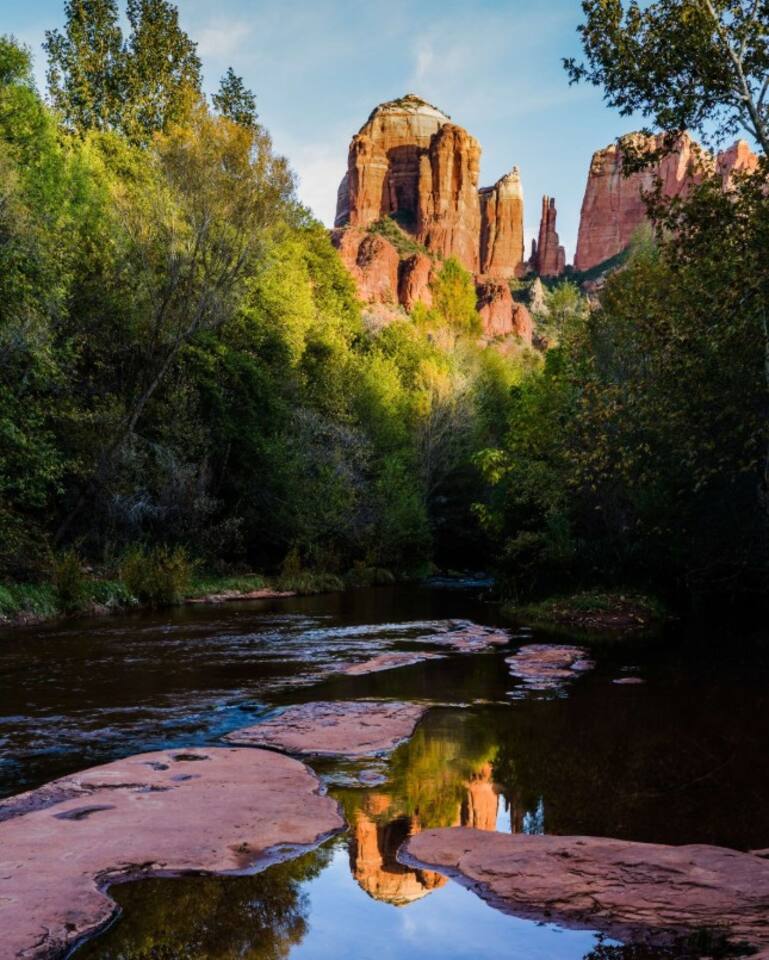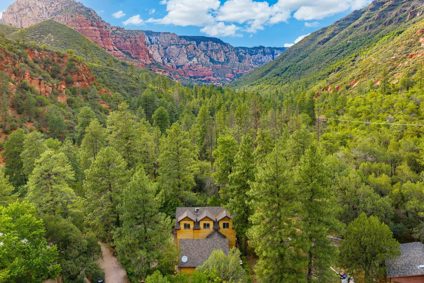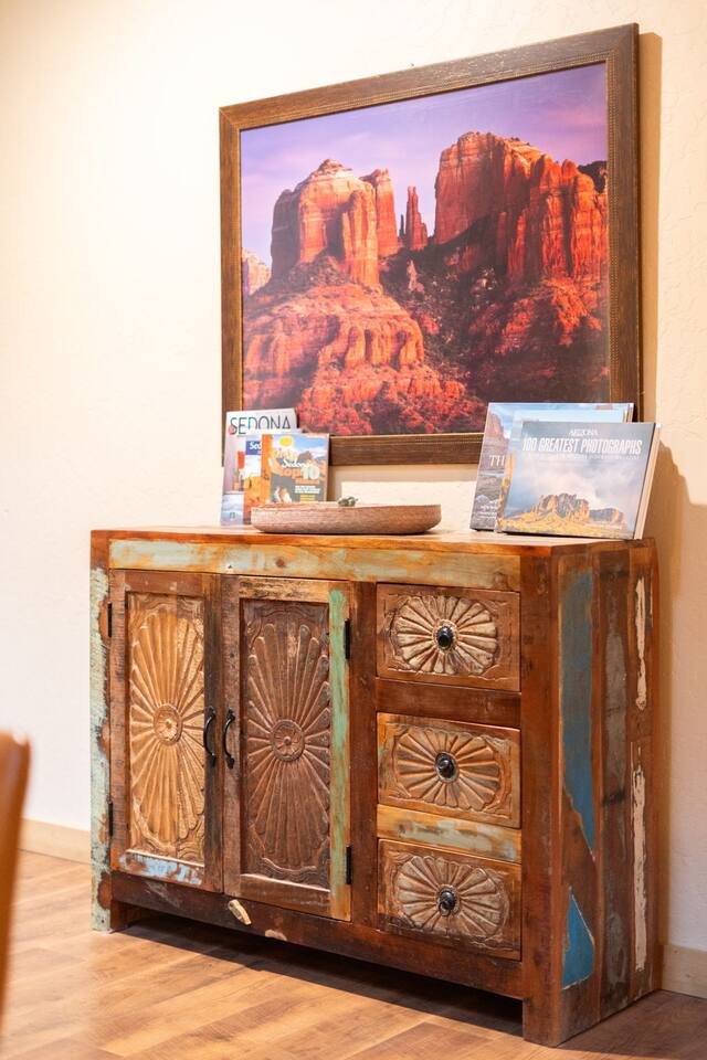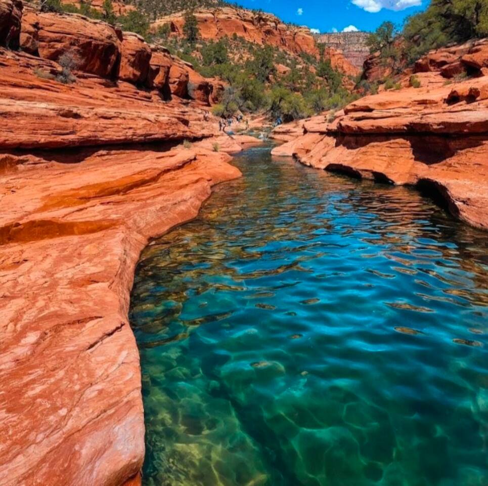 Tucked into the red rocks and Ponderosa pines, Sedona’s Hideaway at Oak Creek Canyon offers a tranquil escape without the crowds. Whether you’re reconnecting with family, retreating with friends, or hosting a curated getaway, this space blends modern design with natural beauty to create an unforgettable retreat. Sleeping Arrangements Main House: 3 bedrooms, 2 bathrooms Canyon Casita: 1 bedroom, 1 bathroom Loft: 4 twin beds — ideal for kids, singles, or overflow The property sleeps up to 12, but feels most comfortable for 6–8 with extra room to spare. Why Guests Love It Location: Walk straight from your door to canyon trails and swimming holes — no need to drive. Proximity: Just 1.5 miles from Slide Rock State Park, one of Sedona’s most iconic attractions. Dual Access: Stay within 10 minutes of Sedona’s best hikes, shops, and restaurants while also being close to Flagstaff. In most Sedona rentals, Flagstaff would require a separate trip — here you can experience both in the same day. Versatility: The home effortlessly adapts — equally cozy for a small family yet spacious enough for corporate groups or curated retreats. Guests love how it “shape-shifts” to meet their needs while staying comfortable and welcoming.